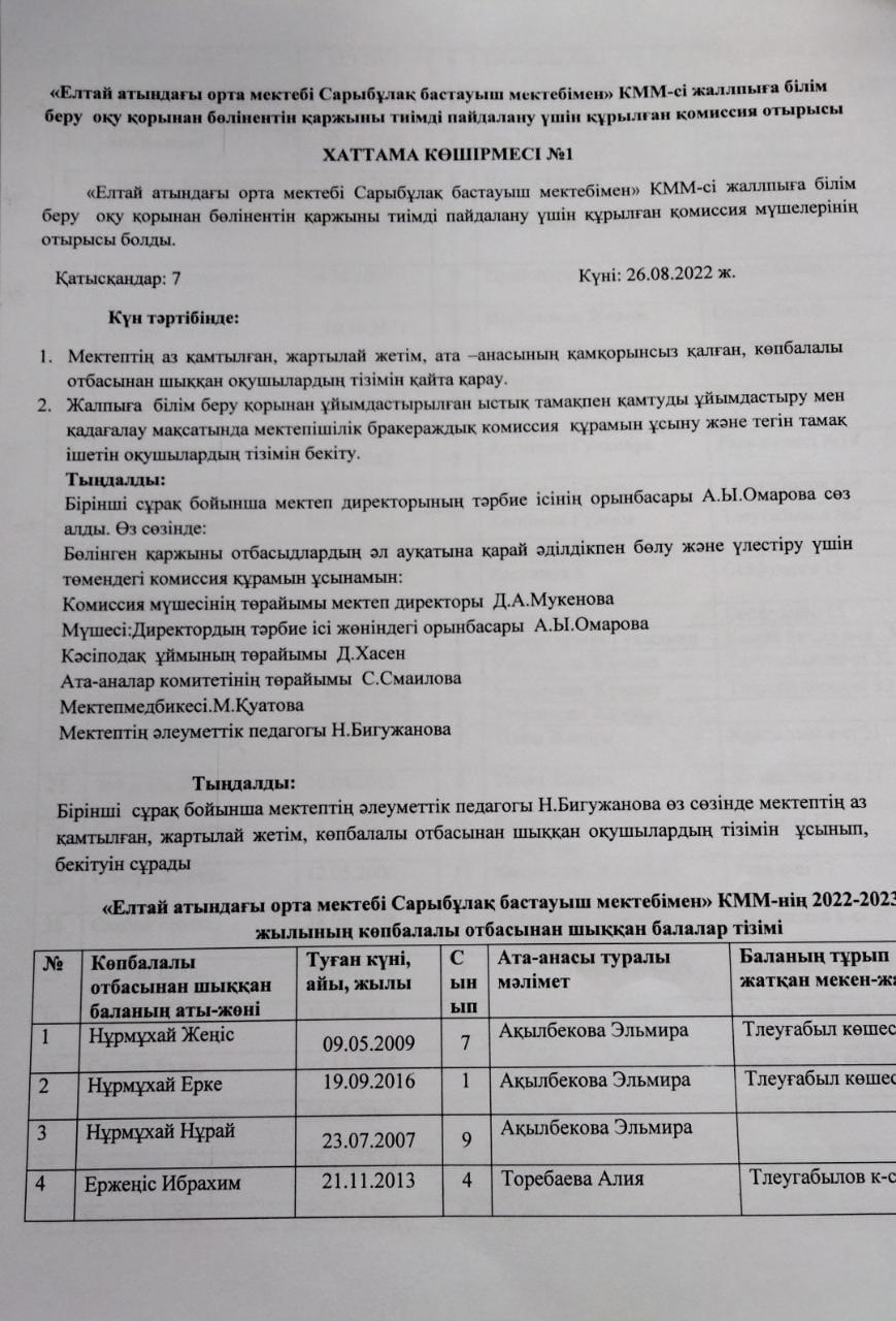Тамақтану сапасы мониторингісін жүргізу жөніндегі комиссия отырысы » Елтай орта мектебі